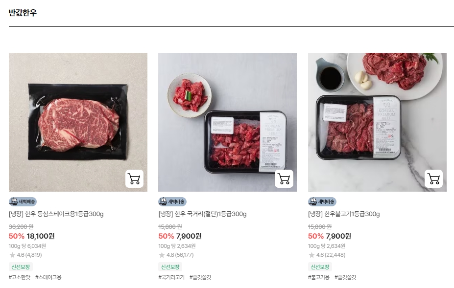한우 '1++' 등급까지 최대 50% 할인된 가격으로 제공됩니다.