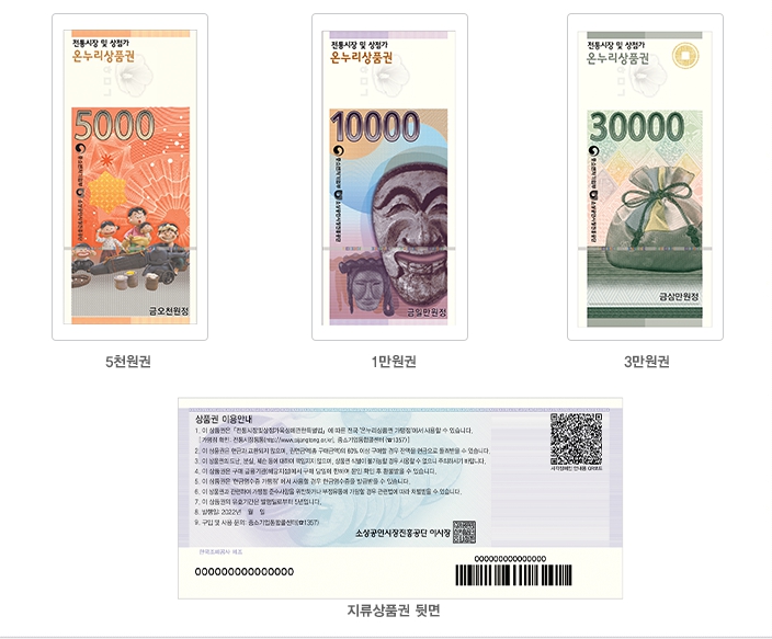 - 유효기간: 상품권의 유효기간은 발행년도로부터 5년입니다.