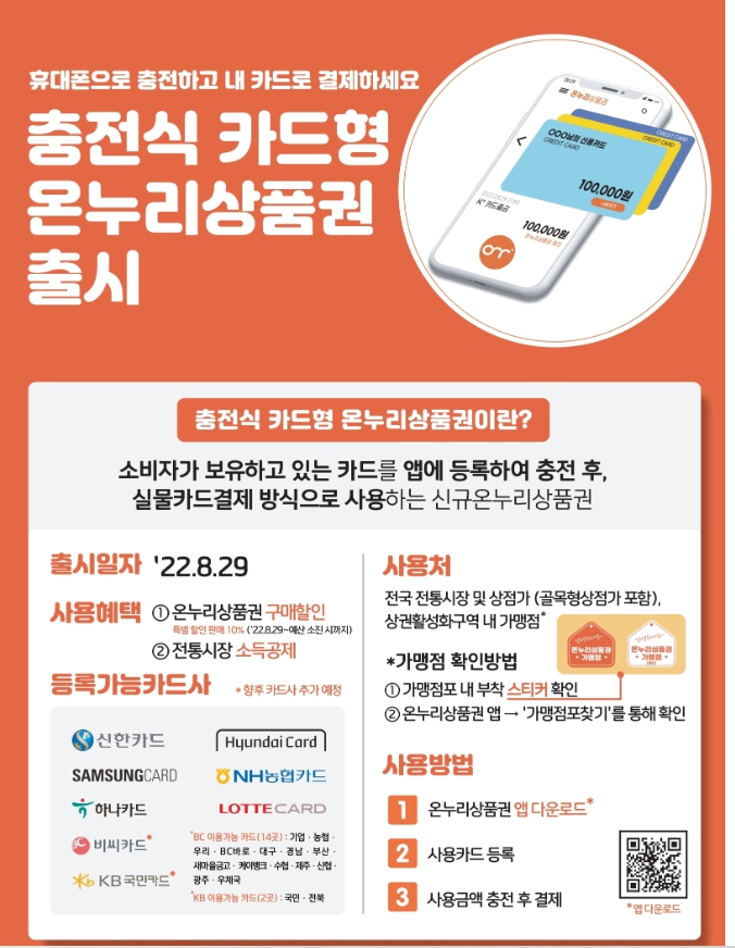 온누리페이 앱: 앱을 설치한 후, 신용카드나 체크카드를 등록하여 충전 후 사용할 수 있습니다.