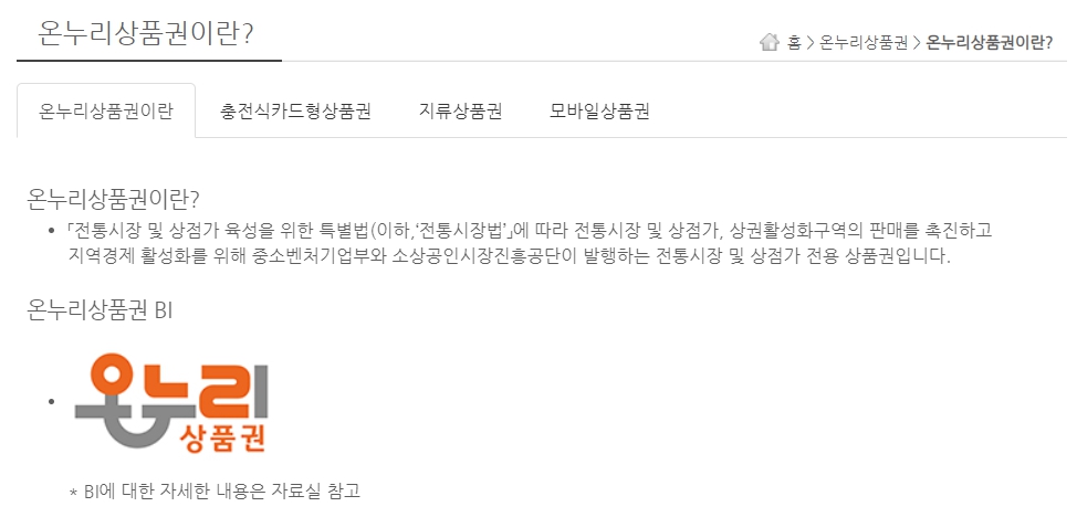 - 온누리상품권 관련 정보: 온누리상품권 소개 구매 및 사용 안내 위변조 식별 방법 판매회수 현황 FAQ