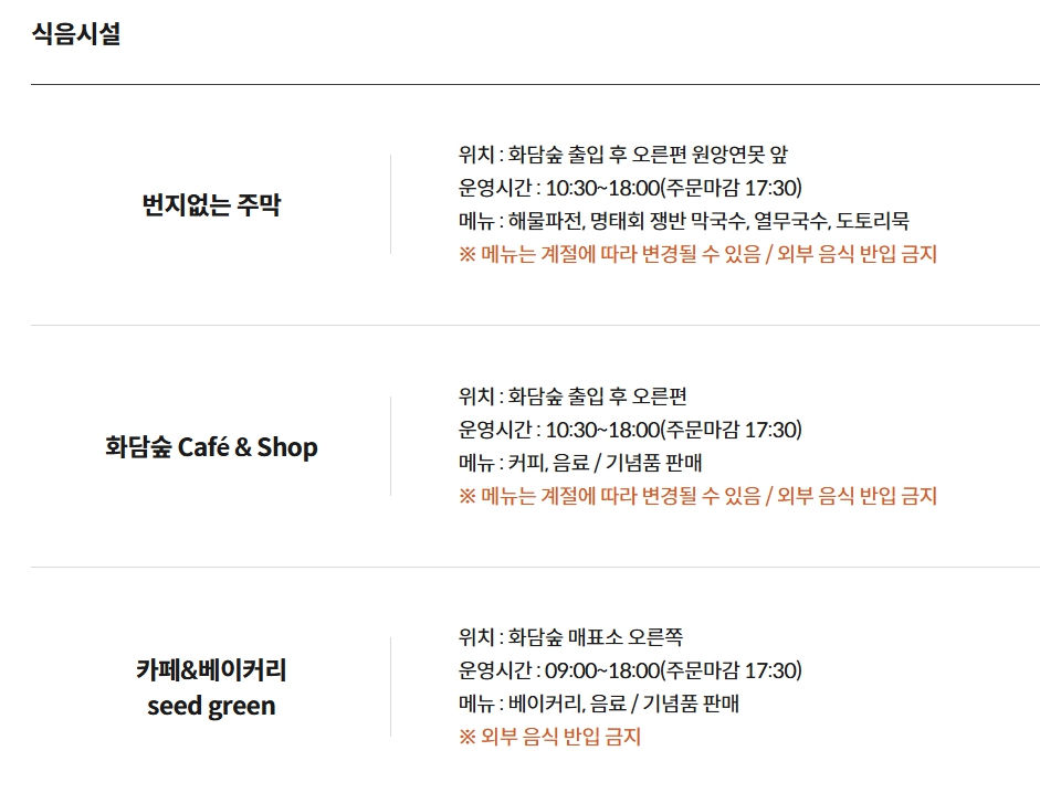 기타 시설 번지없는 주막, 화담숲 Café & Shop 등의 시설을 이용할 수 있습니다.